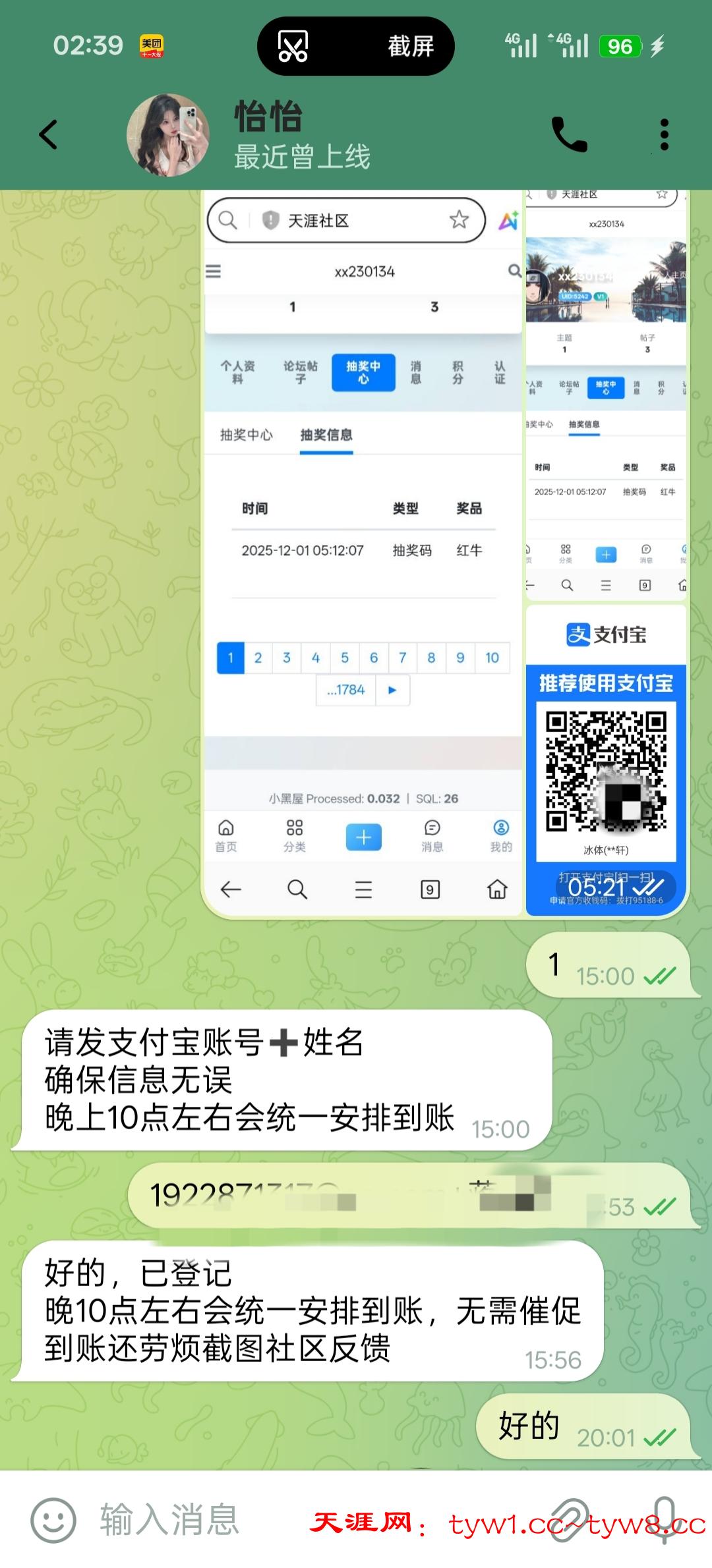 天涯中奖