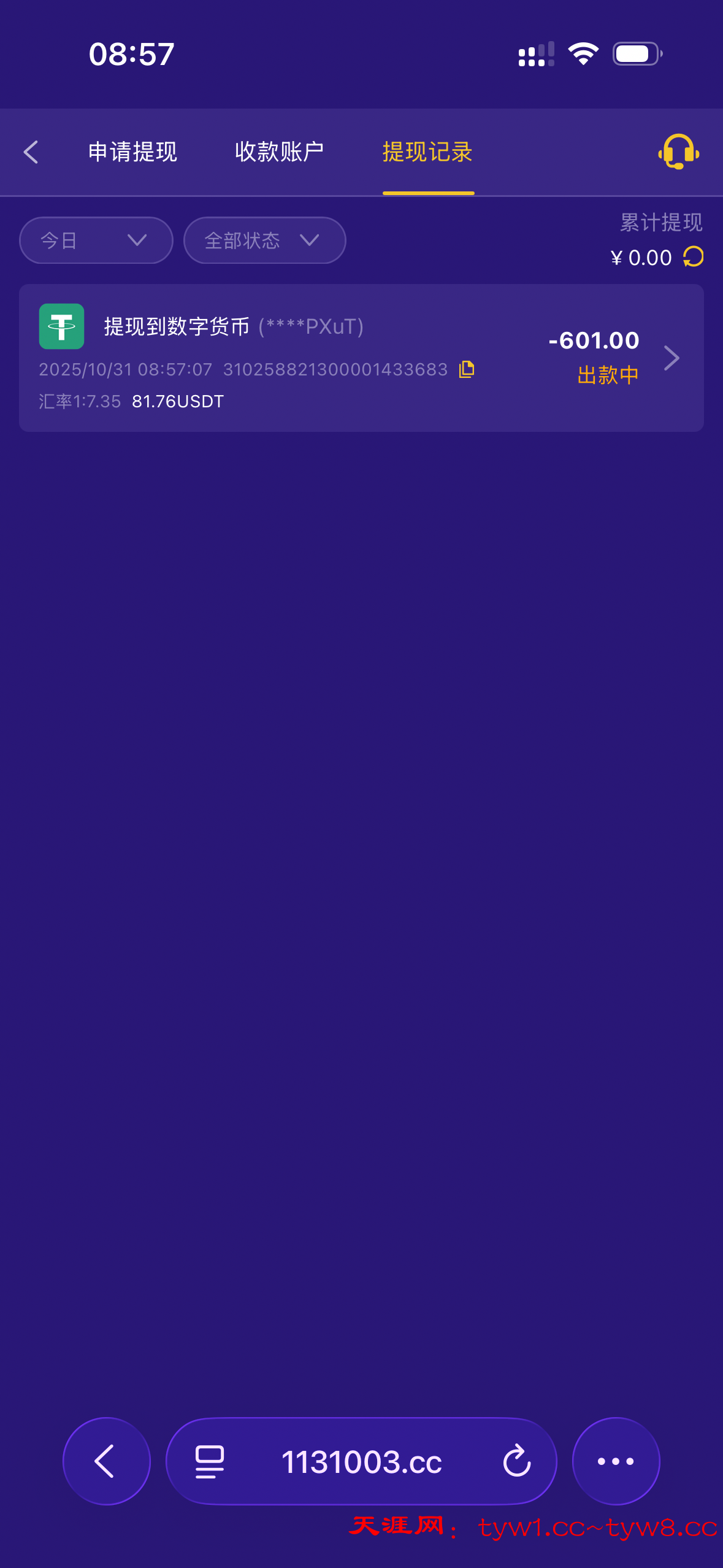 大水提了1k的k豆。就是半小时还没到,到账很墨迹