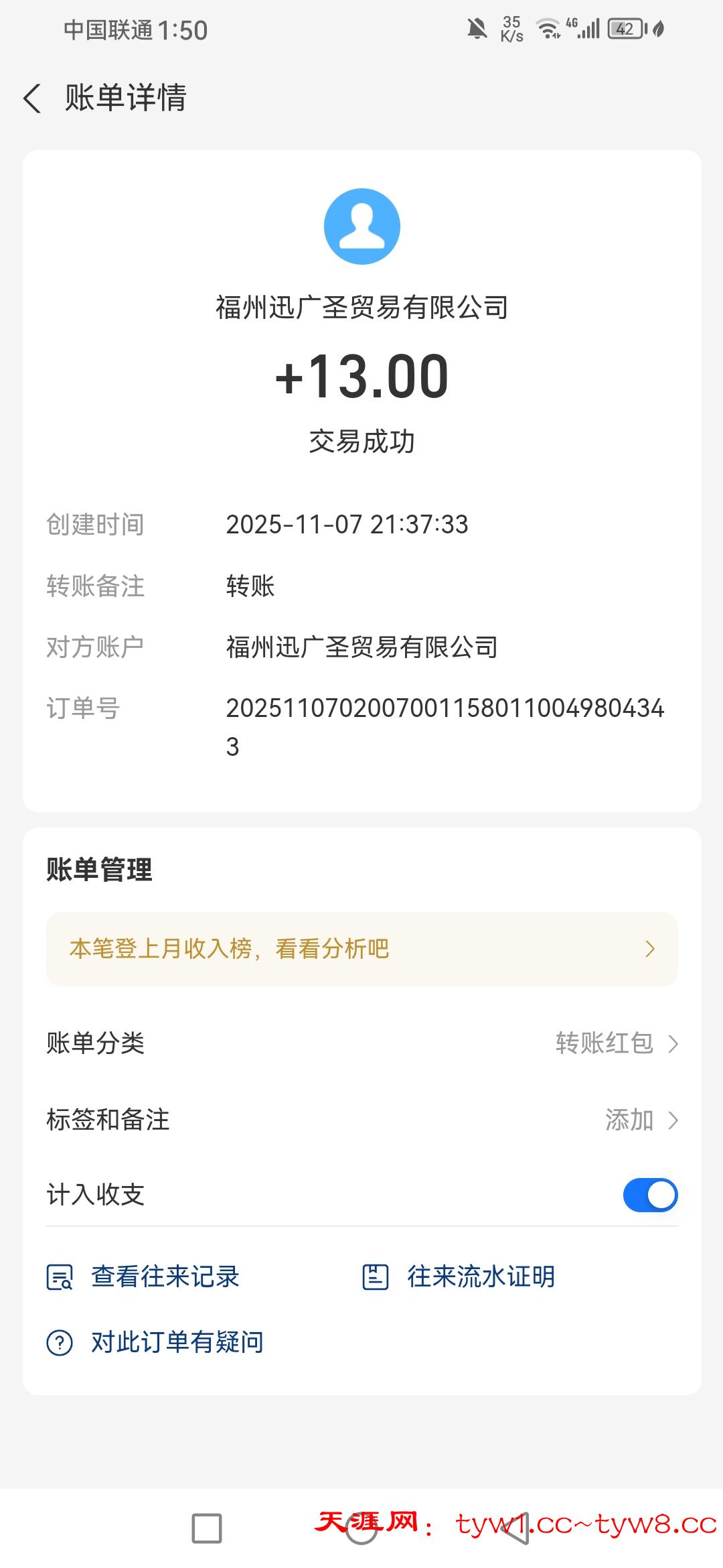 到账了