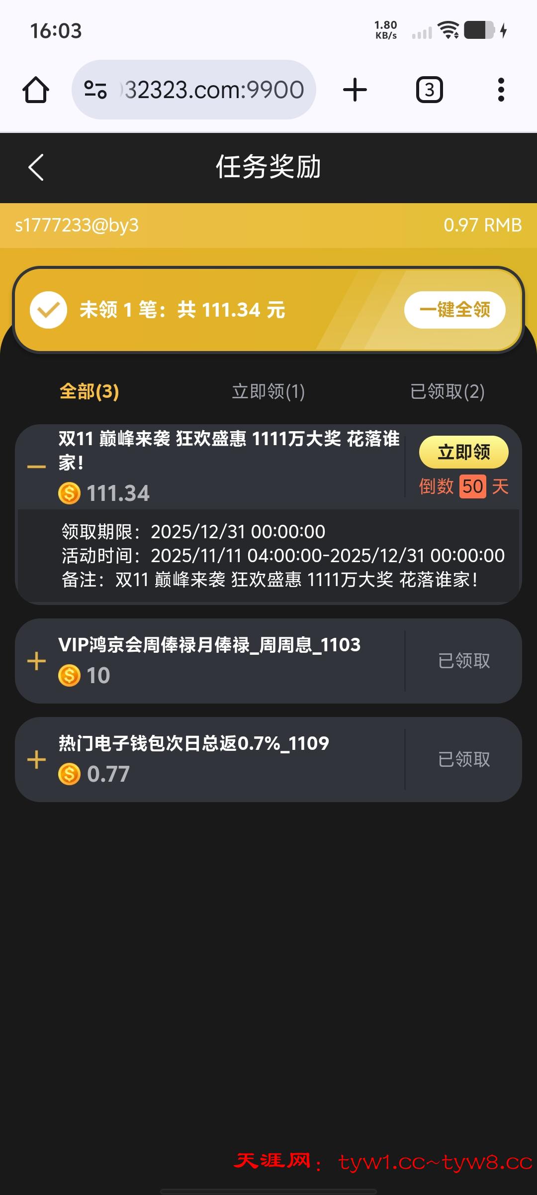 11.1-11.10充值过111以上的,上线优惠里自行领取,本人充值了几千领取了111