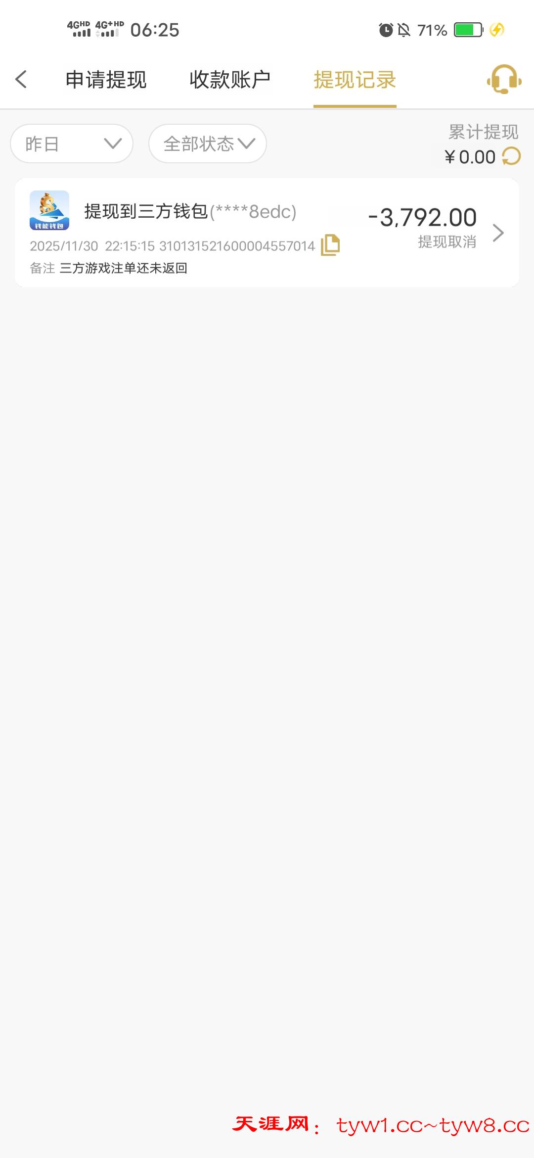老子玩的彩票  只下了6把   结果跟我说注单未返回?操他妈的!老子在他的平台投注记录都找到了  他说没返回    畜生