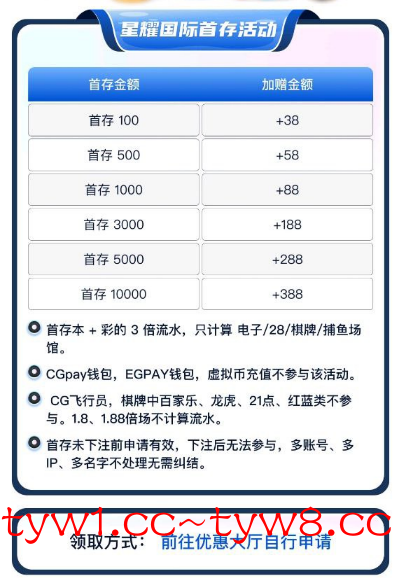 ✅ 新玩家周期内充值1500 流水 3500 以上 反688元 只有注册的对应周期存款才有,要官方平台过审的,可查验,多充多娱乐更容易达标,没有过审的补私人彩金188~388,为了避免多iP不要开加速器