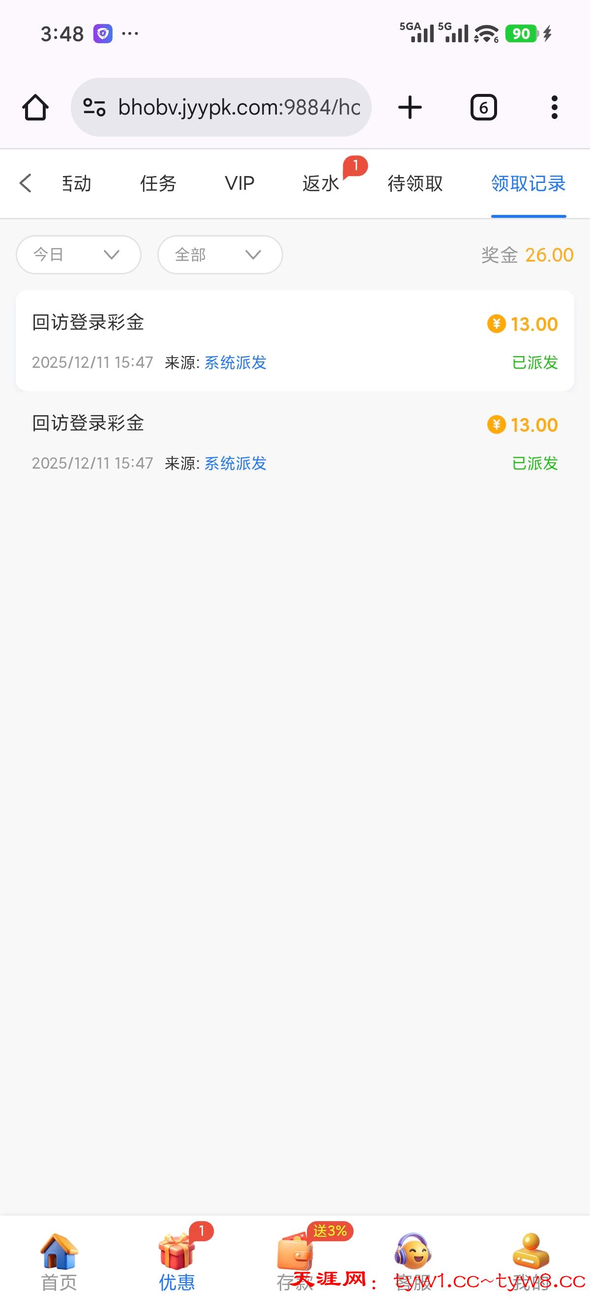 接到电话上号领了26  上去看看有没有 只能玩电子3倍