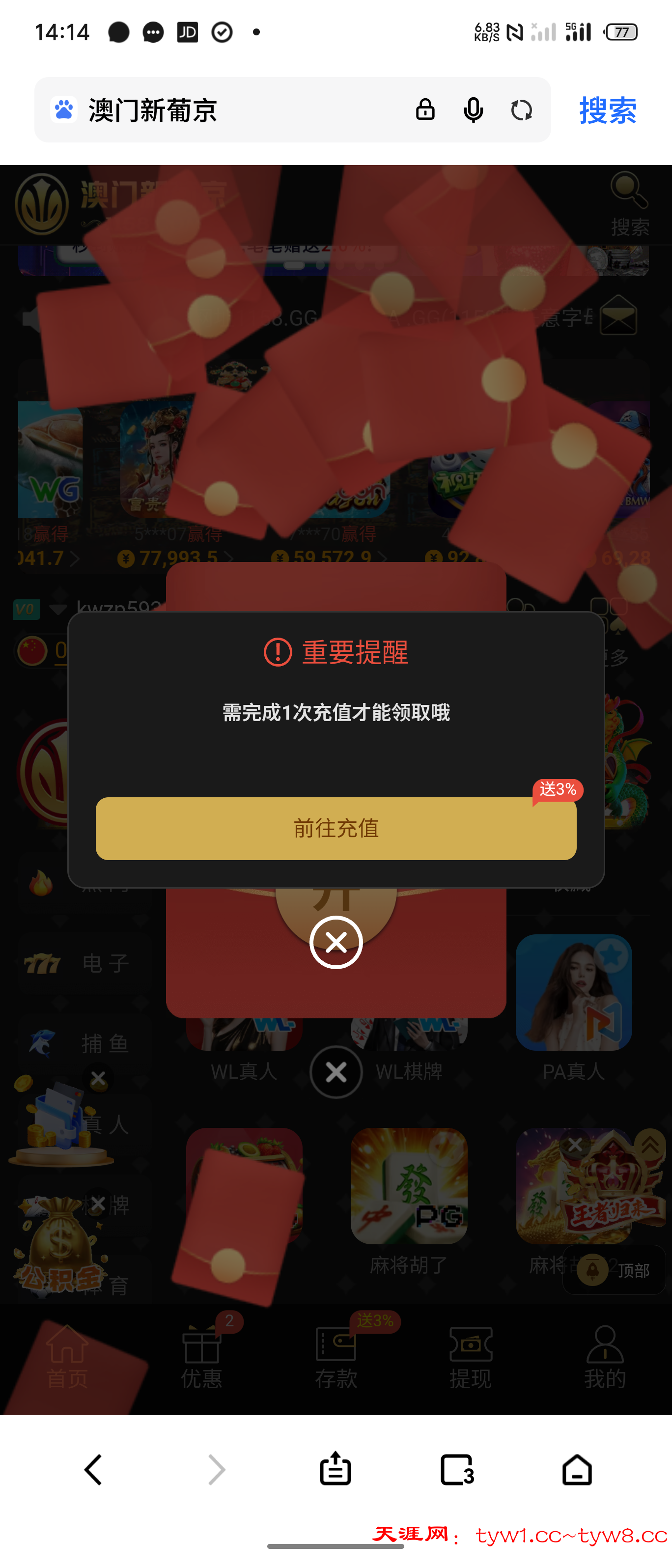 之前注册过的可以去看看 没充值过我领了12