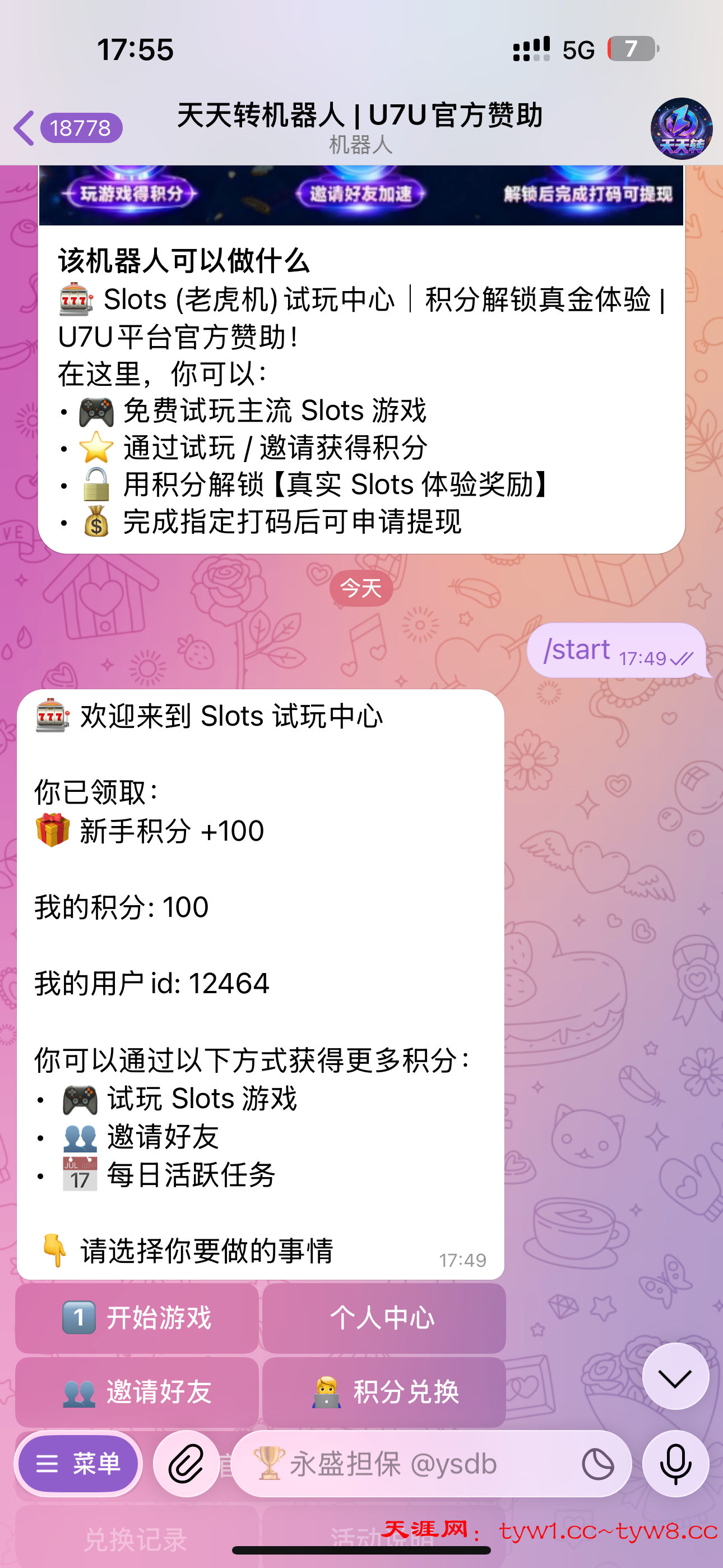 【TG天天转 注册送100积分 打到1500积分即可兑换5u】