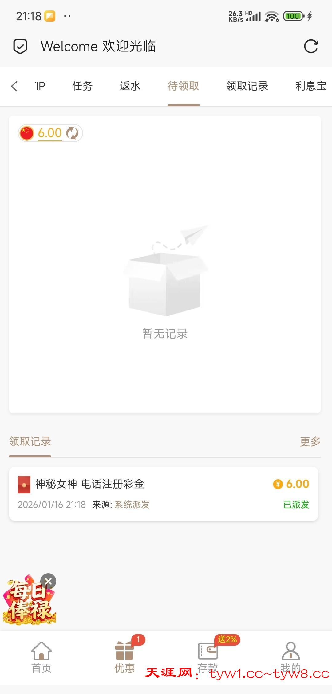 回访领到6块老哥们自己去看看有没有