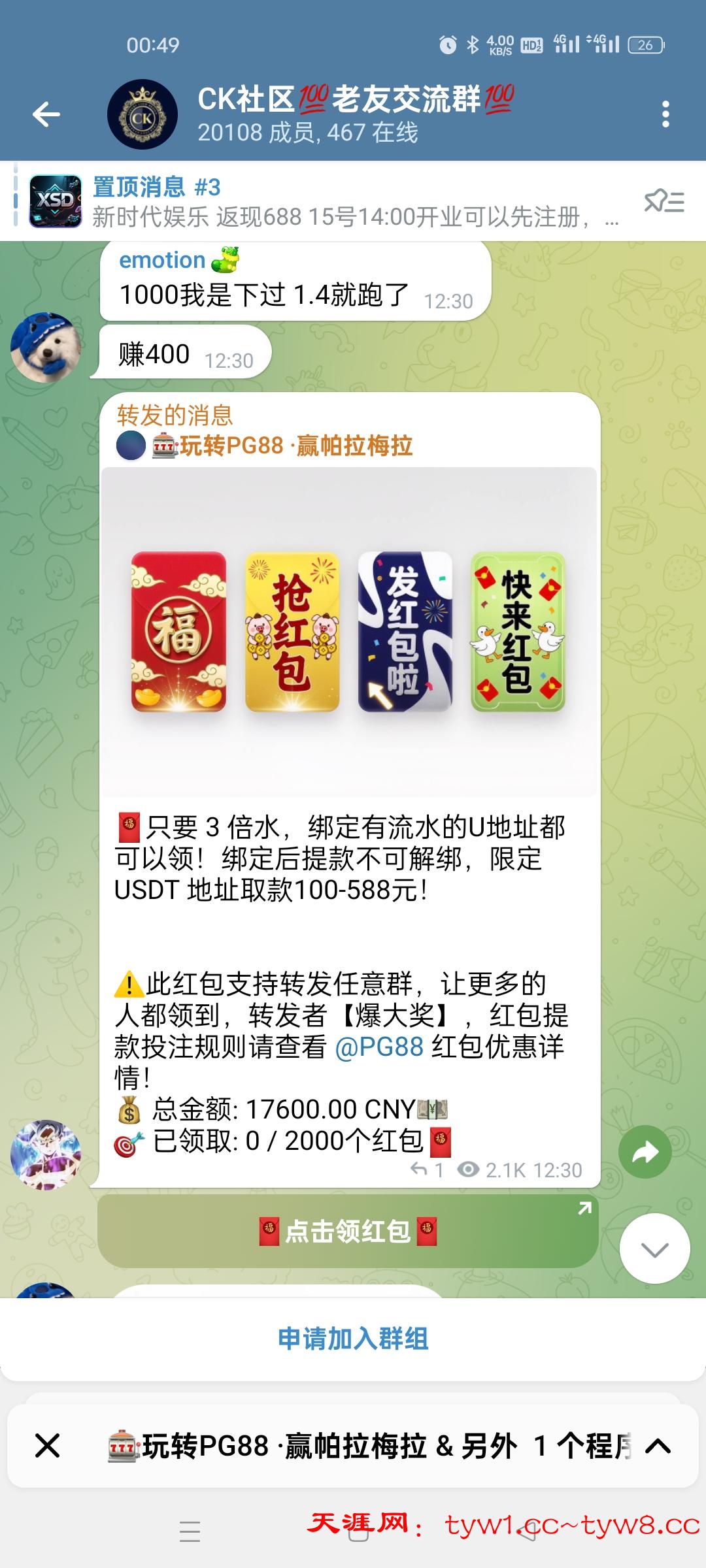 ,进去看到个有个管理发的红包直接领,还有9000u,领不到你来打我