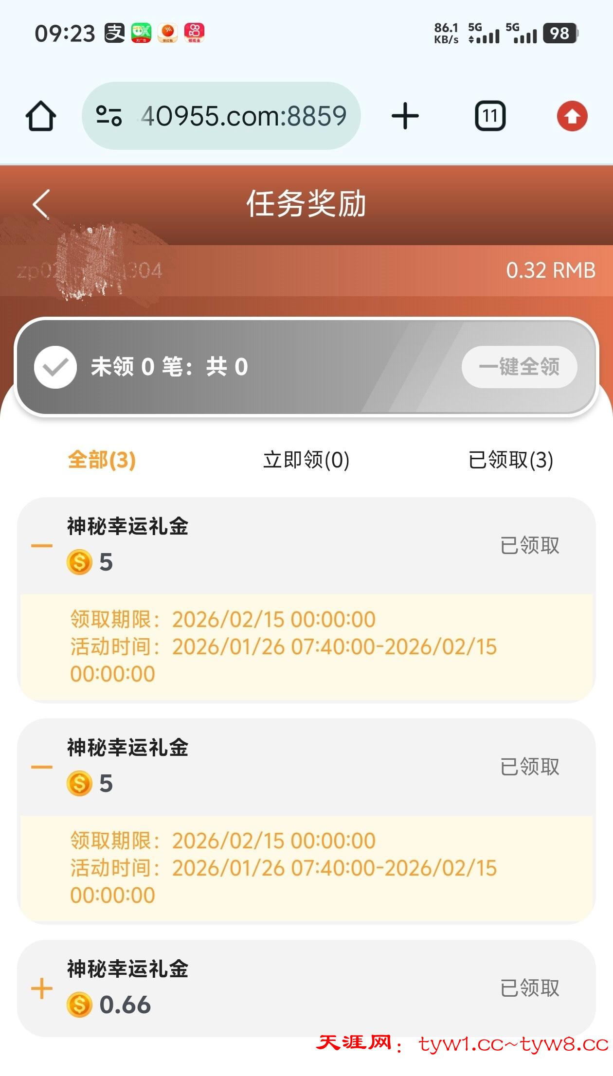304.com 没充值 回馈了两个5