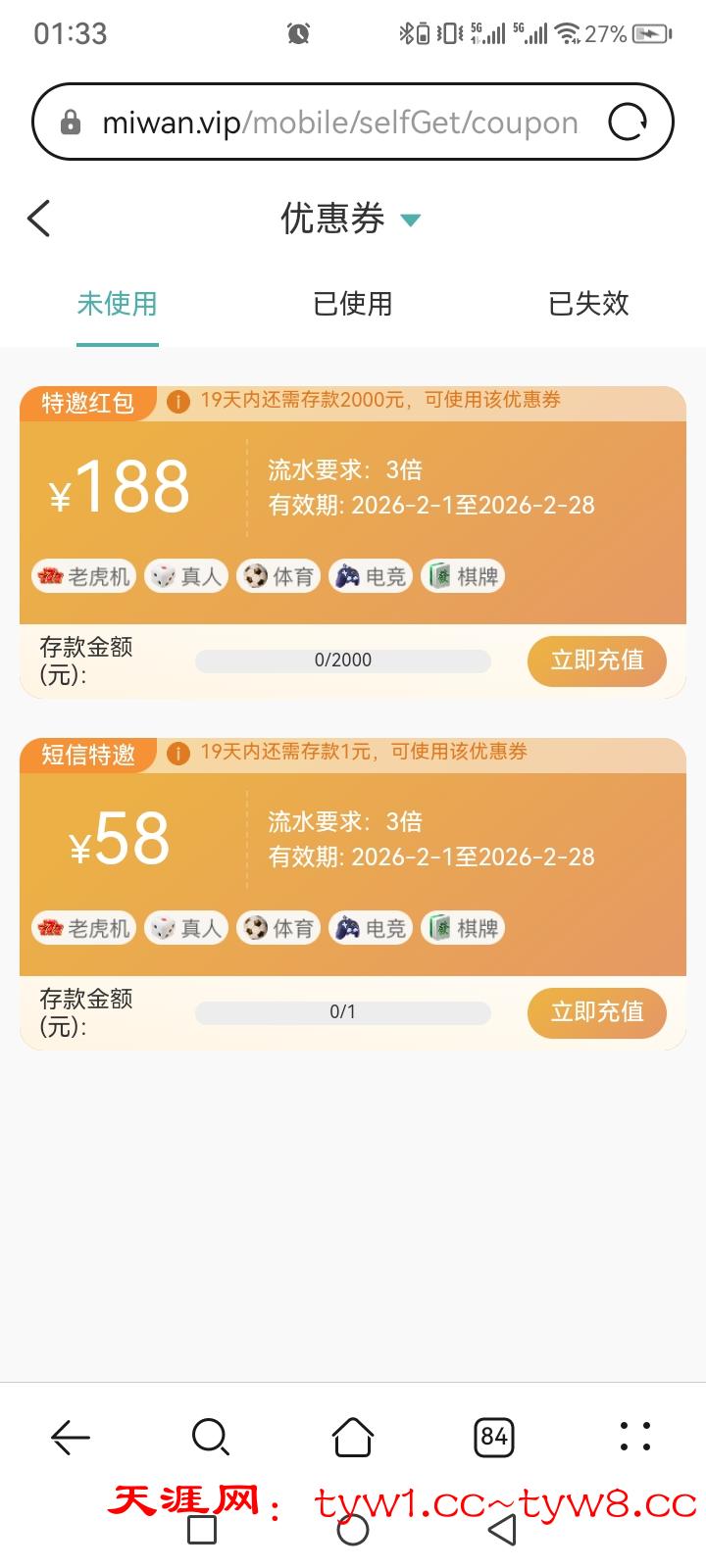 qyh.vip 最低充值50块,58的优惠3倍流水,188的优惠劵就不必理会了。