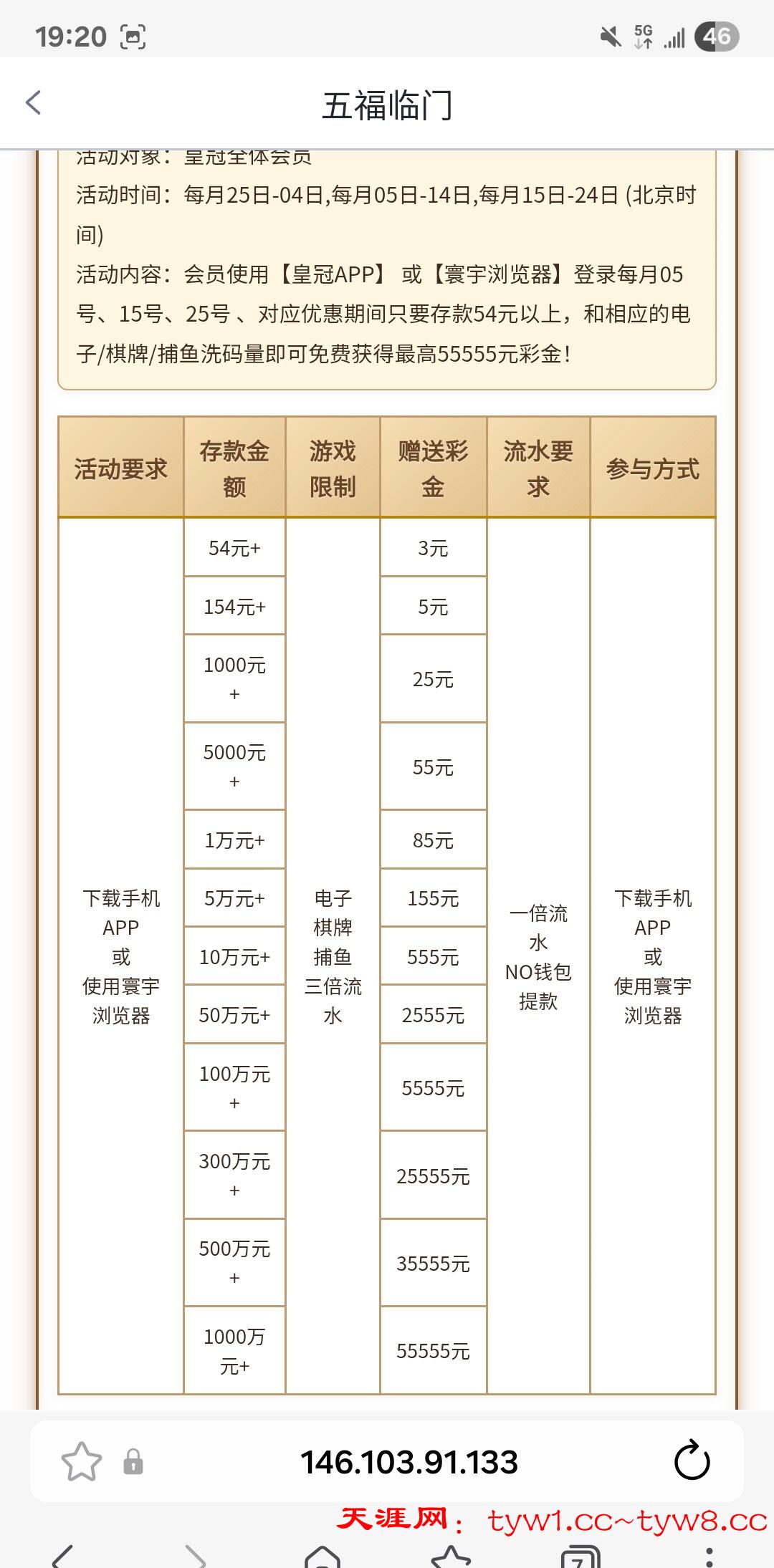 【皇冠154-五福临门彩金】